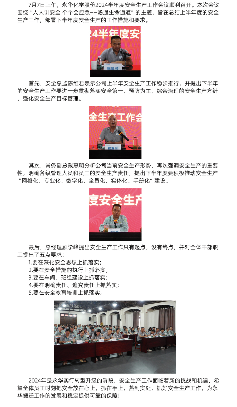 上一篇:支塘消防中隊到我司開展消防演練活動 下一篇:永華化學(xué)股份召開2024半年度銷售工作會議